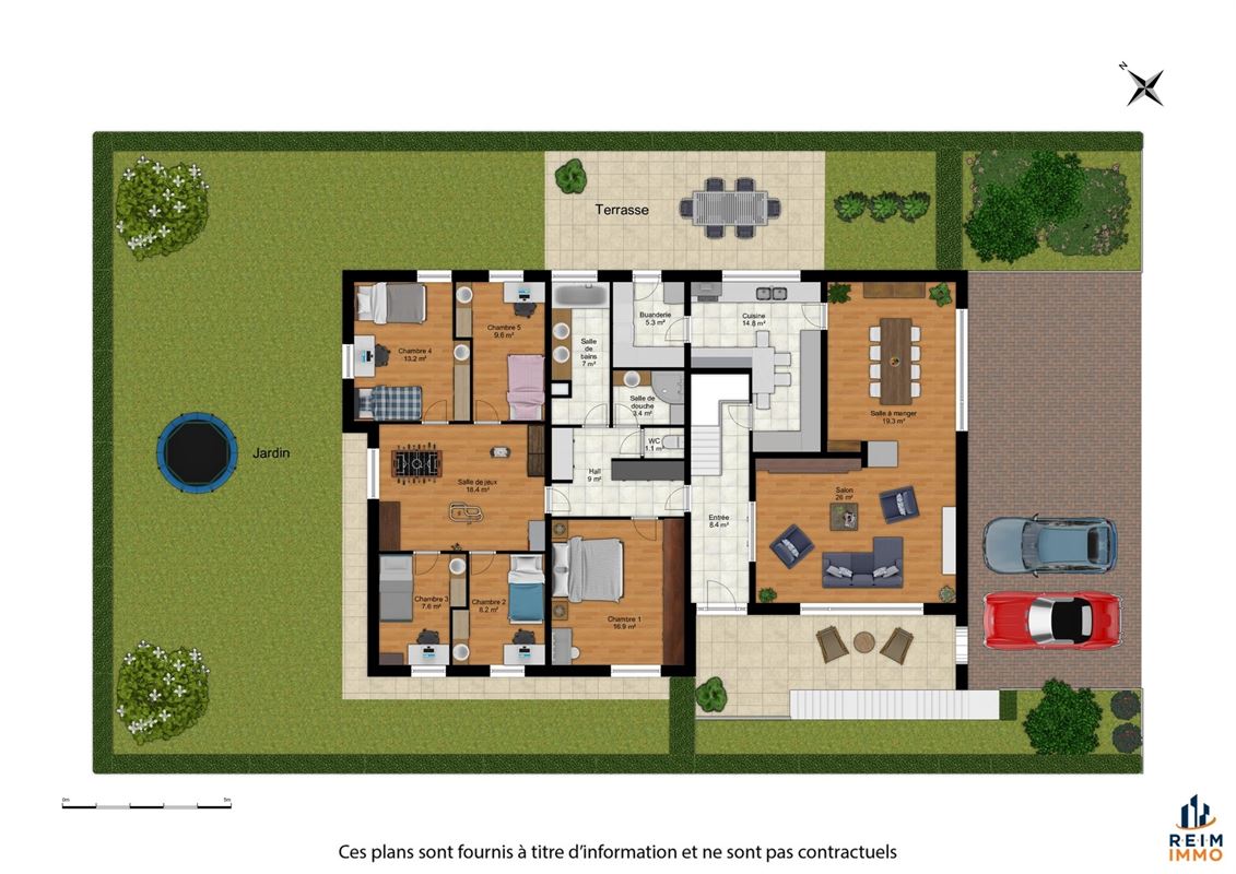 Elle est composée comme suit : au rez de jardin, halle d'entrée, séjour de 45m² avec poêle à bois, cuisine équipée de 20m² avec buanderie et accès au jardin, hall de nuit avec wc déservant 5 chambres dont 1 chambre parentale de 17 m², salle de bain et salle de douche avec wc. Salle de jeux ou bureau. Grenier de rangement (aménageable).