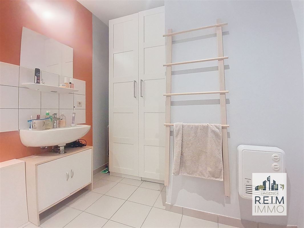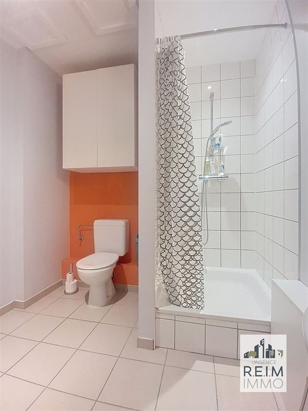 Situé au rez-de-chaussée d’un immeuble récent construit en 2010, ce studio de 32 m² (PEB B) offre une configuration fonctionnelle et agréable. Il se compose d’un hall d’entrée, d’un séjour lumineux avec cuisine et espace pour lit et bureau, ainsi que d’une salle de douche séparée avec WC. L’immeuble bénéficie d’un chauffage collectif au gaz avec calorimètre et d’un adoucisseur d’eau général.